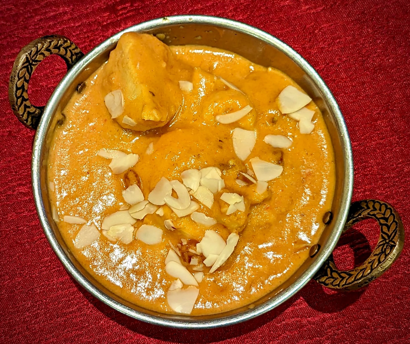 Assortiment de spécialités tandoori nappées d’une sauce aux amandes.